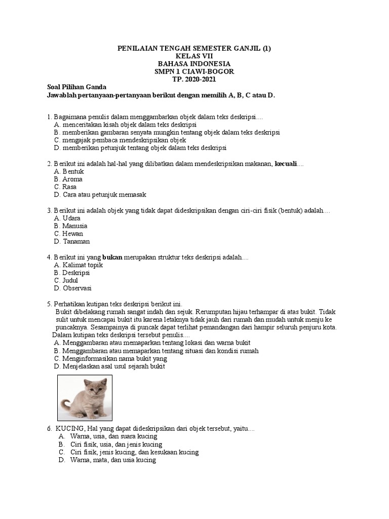 Soal Siswa PTS Sem-1 Ganjil Kelas 7 PDF - hukum kucing di pts